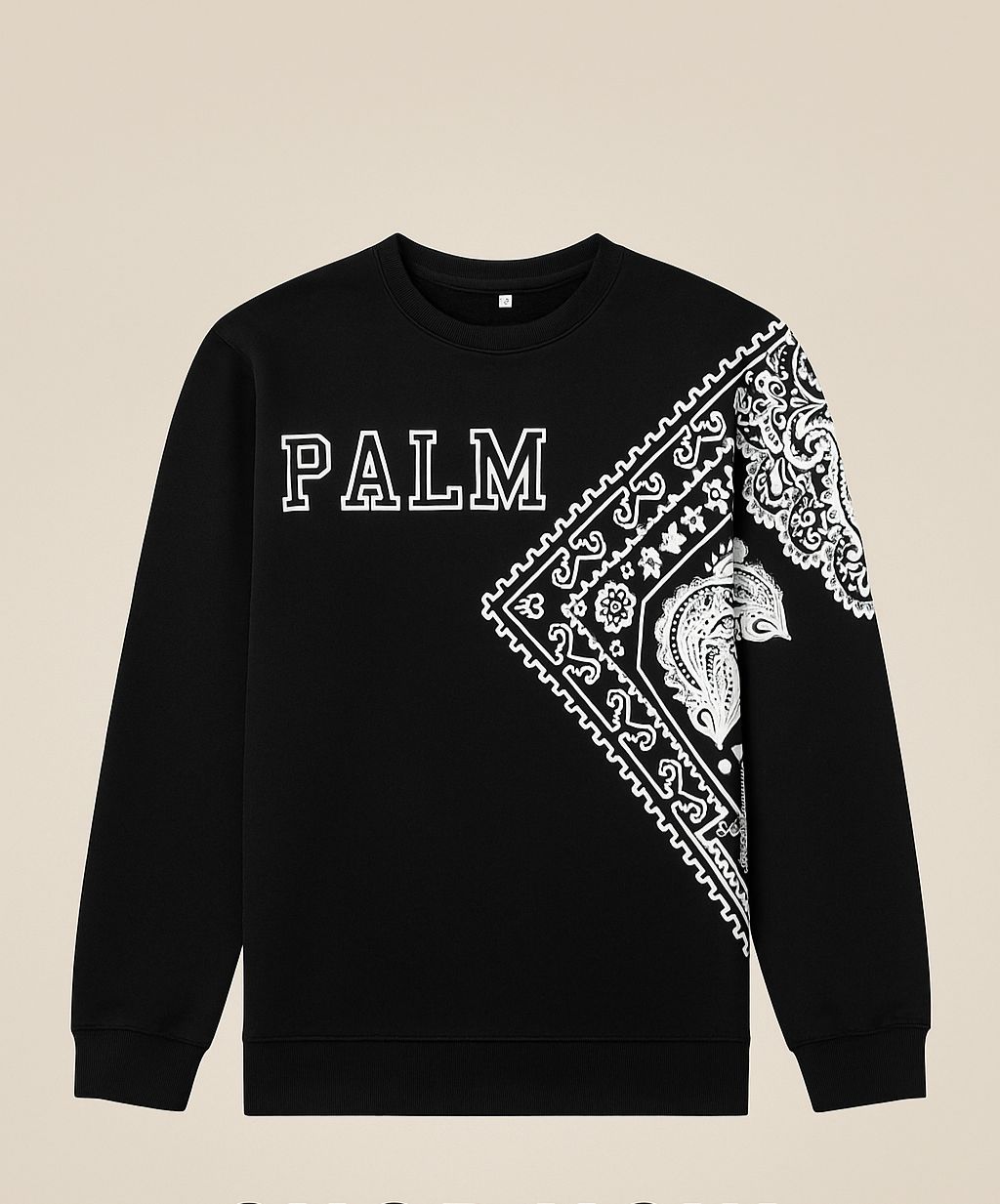 Made from soft, breathable cotton-blend material, the Black Palm Printed Sweatshirt ensures maximum comfort while maintaining its sleek designer appeal. Its high-quality stitching and fabric make it durable, warm, and stylish — ideal for your fall and winter wardrobe.