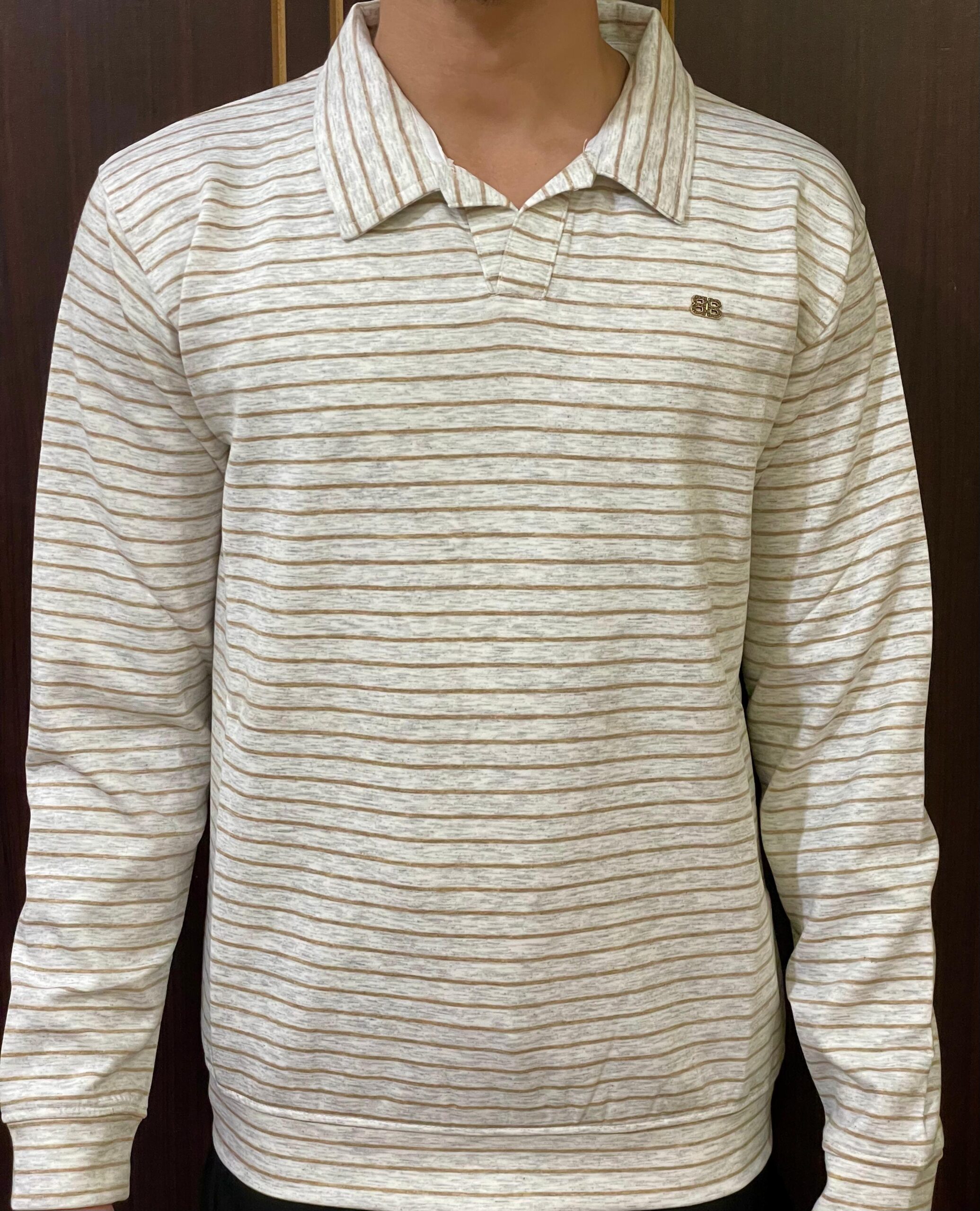 Upgrade your winter wardrobe with the Men’s Beige Striped Polo Sweatshirt by Zavyaar Fashion, a perfect blend of comfort, warmth, and timeless style. This sweatshirt features subtle beige and light brown horizontal stripes, giving it a refined, classy appearance suitable for any casual or semi-casual occasion.
